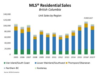 The average MLS® residential price in the province is forecast to increase 20.4% to $766,600 this year and a further 3.4% to $792,800 in 2017.