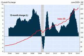 The indexes for Vancouver and Edmonton came in flat on the month. For Edmonton it was a sixth straight month without a decline, for a cumulative gain of 3.4% over the period. Indexes were down on the month for Toronto (−0.1%), Calgary (−0.1%), Halifax (−0.2%) and Quebec City (−0.6%). If the Vancouver index were corrected for seasonal variation, it would have shown retreats in each of the last four months. If the Calgary index were so corrected it would have shown retreats in each of the last three months. This observation is consistent with declines in home sales reported by the real estate boards of these two markets.