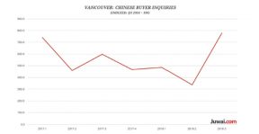 Following a steep drop-off in Metro Vancouver homes searches by potential buyers in China, interest spiked again in 2018’s third quarter, according to data mined for Glacier Media by China’s biggest international real estate website Juwai.com.