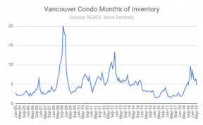 However, Saretsky notes that with 4.7 months of inventory — that’s how long all condo listings would take to sell out if the current pace of sales persisted and no new units arrived — the market is showing signs of balance. Towards the end of 2018, inventory was approaching the 10-month mark.