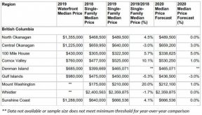 All but one of the seven recreational markets is expected to see prices hold steady or increase in 2020, with the exception of the Gulf Islands, predicted to decline 3%.
