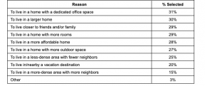 Additionally, many Americans seem to be considering a move, as Zillow traffic on For Sale listings was up almost 50 percent year-over-year in May. Here are the reasons survey respondents gave as why they’d be most likely to move if given the opportunity to work from home :