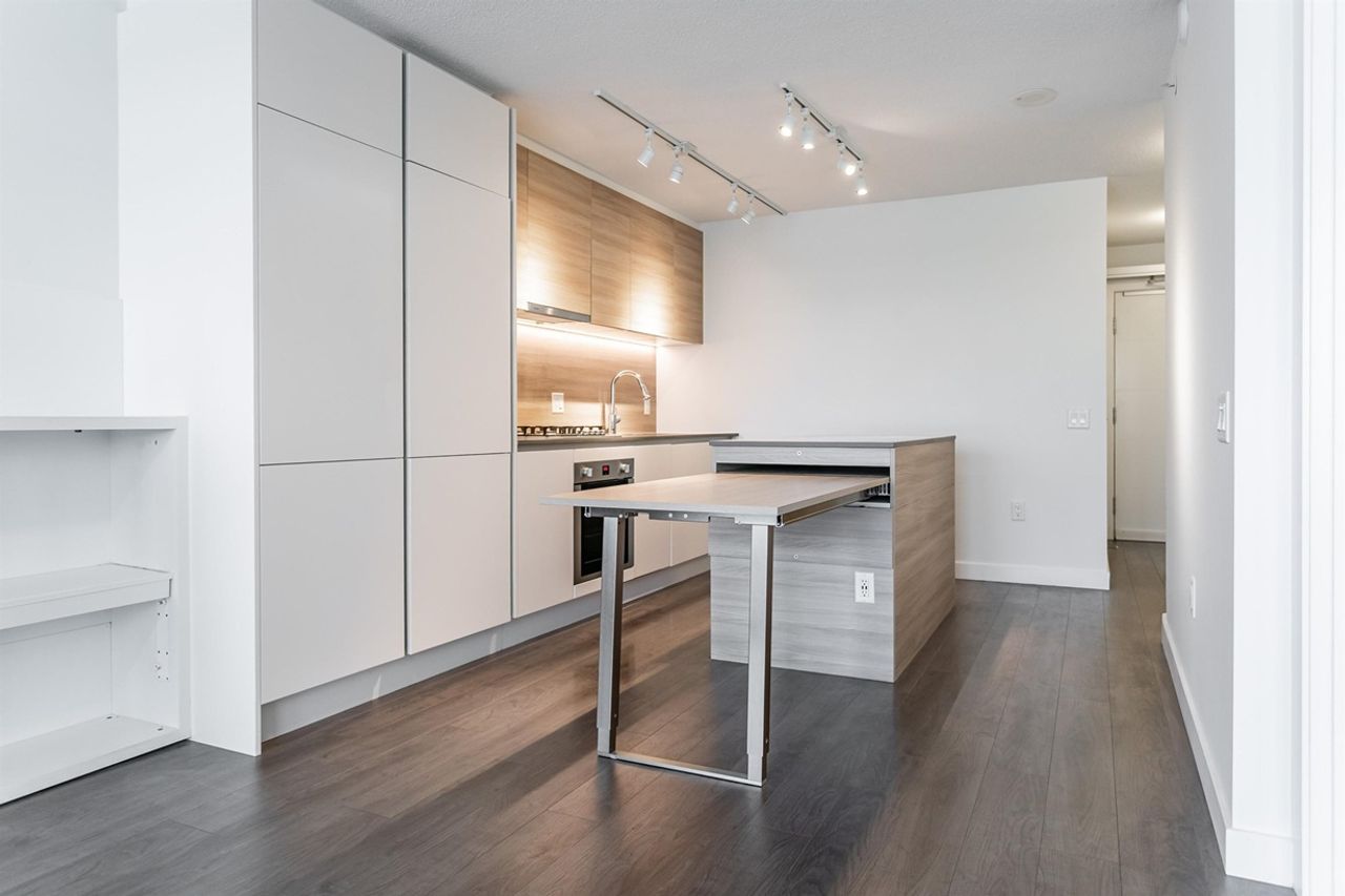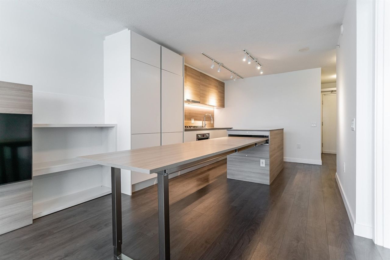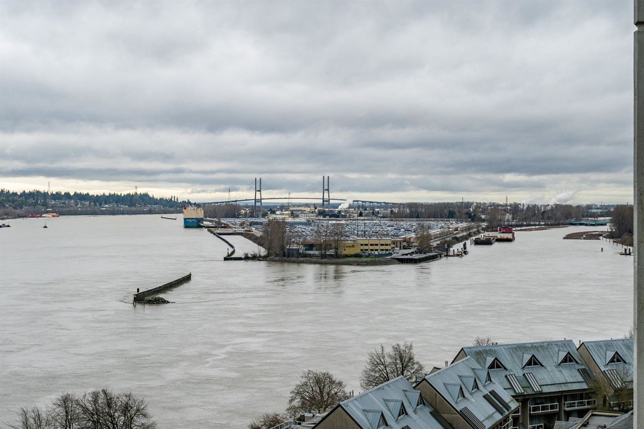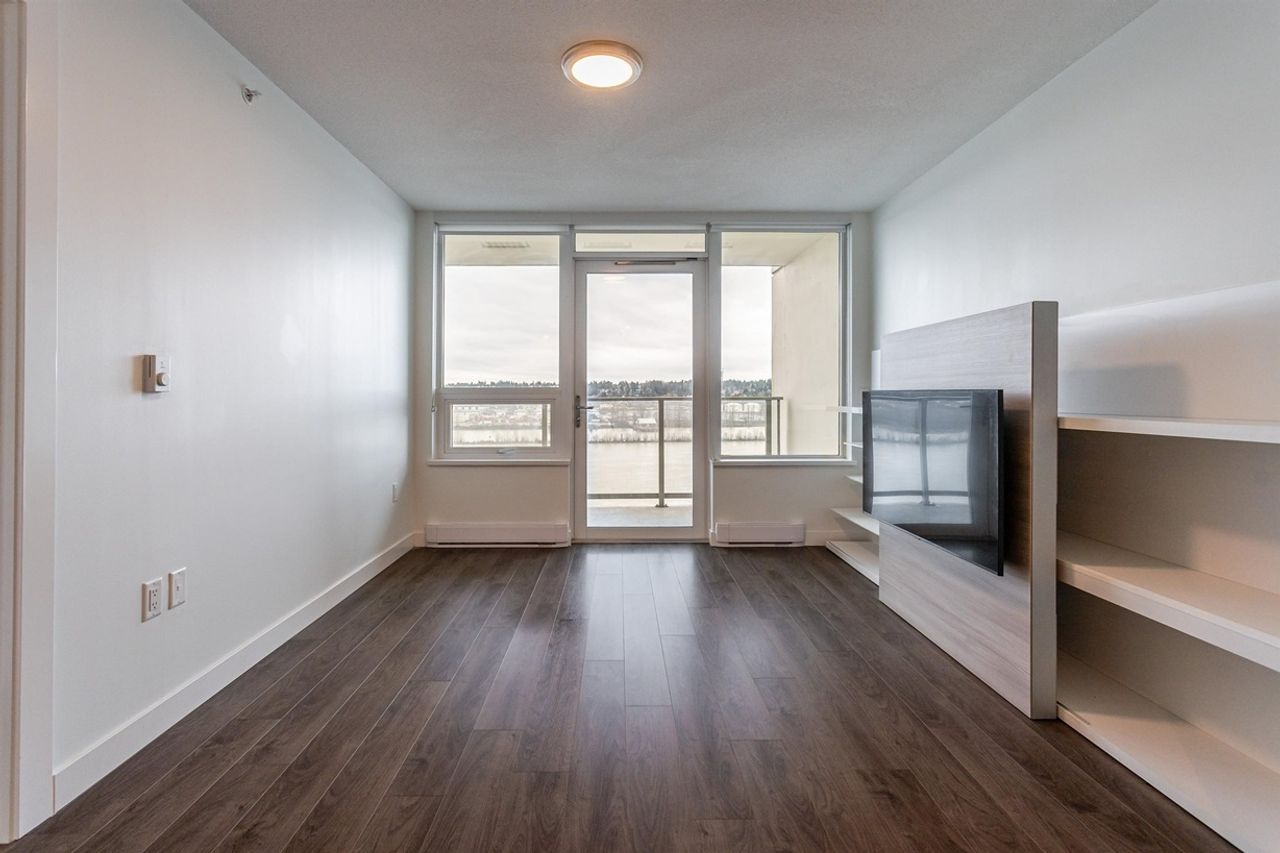 Welcome to RiverSky by Bosa – This desirable 1 bdrm, 594 sqft floor plan offers expansive windows to showcase panoramic river views. Featuring BosaSpace Furnishings, interior is freshly painted, stylish flooring, modern two-tone cabinetry with integrated panels, large kitchen island, beautiful stone countertops, extended dining and worktable, gas cooktop, slide out hood fan, built-in wardrobes, parking & storage lockers. Building has a full-time concierge and fantastic amenities : fully equipped gym, yoga studio, social lounge, fireside patio, greenspace courtyard and rooftop terrace with BBQ area. Prime location, steps from transit, skytrain, Anvil Centre, River Market, shopping, the Quay boardwalk and everything the waterfront living has to offer.