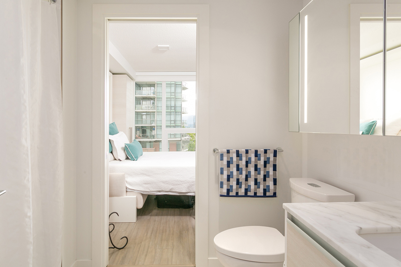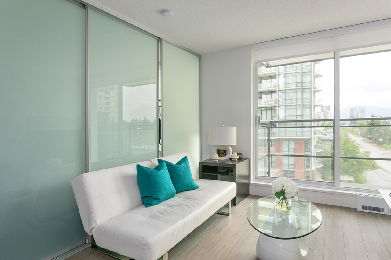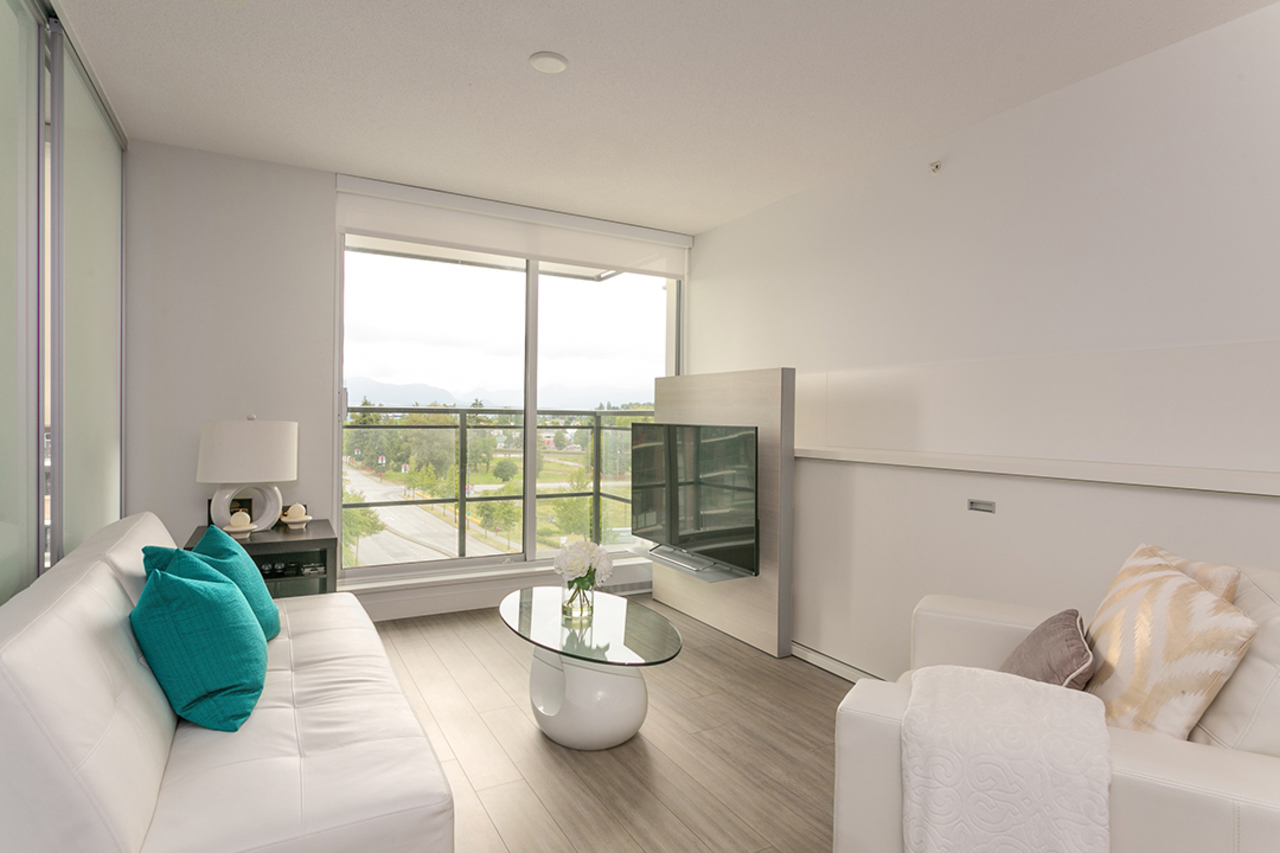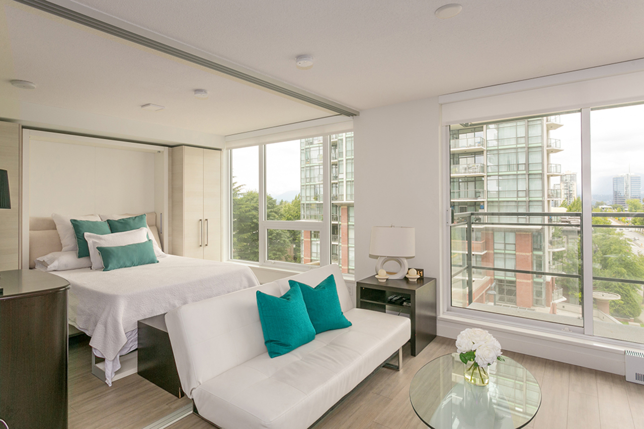 Alumni by Bosa - this sleek tower located in the emerging neighborhood of the Surrey City Centre’s new University District. Enjoy modern living, open concept design 565 sqft suite, features space mgmt furniture system, engineered flooring throughout, eco-friendly radiant H2O heating. Ample sized living room with integrated storage, hidden crash-pad, floating TV panel and views of mountain and city. A sliding frosted glass wall between living area and bdrm allow flexibility and maintain privacy. Solid stone countertops and backsplash in kitchen and bathroom. Extendable kitchen island to dining or work table. LoveSEAT transformable queen size murphy bed, in-suite laundry, parking + locker and 2-5-10 New Home warranty. Building offers concierge/security service, social lounge/party room, fully equipped gym, rooftop garden, BBQ patio, pet run, meeting room, guest suite ($50/per night), volt charging station and visitor parking. Pets and rentals allowed. Close to SFU, all-level of schools, city hall, library, recreation, shopping, transit and Surrey Central SkyTrain station.