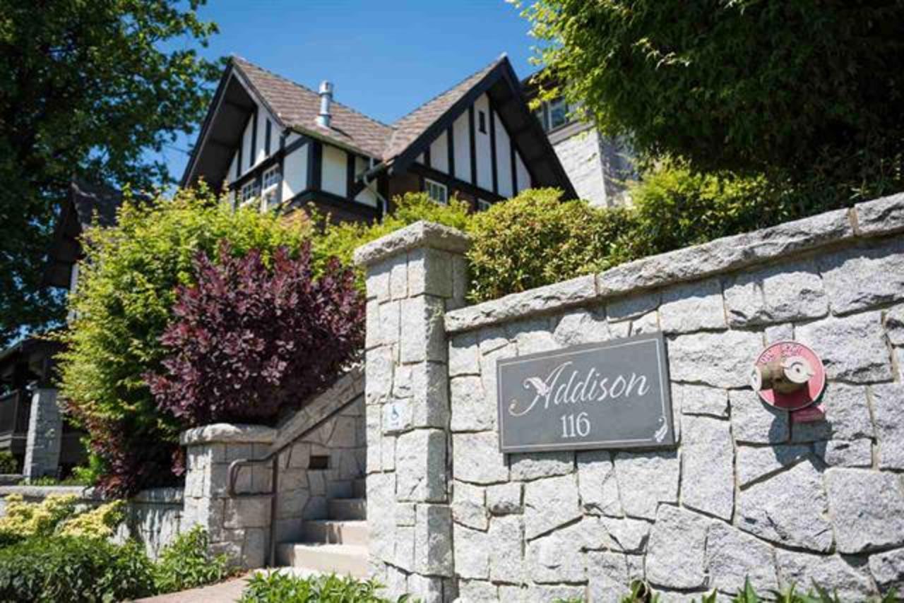 Incredibly unique condo at the highly coveted Addison building. This gorgeous townhome style heritage home is truly one of a kind. Very rare to find one bedroom & den with its own street access, in a fully restored heritage building combined with the quality & attention to detail such as this. This large south facing corner unit is bright & open with beautiful high ceilings, custom windows, real hardwood floors, designer heritage doors, gas fireplace, huge master bedroom & kitchen. Conveniently located in the heart of Central Lonsdale, just walk outsdie your front door & enjoy all the trendy amenities just minutes away. The Addison offers European craftsmanship with in a beautifully West Coast designed luxury building.