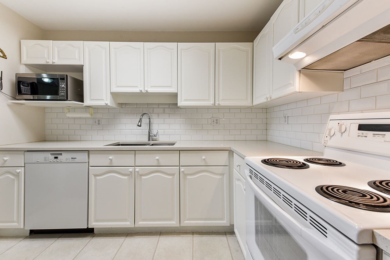 Welcome to “Mission Woods” Complex. Spacious 1180 sqft, 2 bdrm unit features living room with cozy gas fireplace, adjoining dining area, newer laminate flooring, large windows, natural light throughout. Kitchen with ample cupboard space, upgraded SS fridge. Master bedroom boasts an extra-large walk-in closet and updated 5-piece ensuite. Bright and airy wraparound SW-facing 258 sqft covered balcony, overlooks the evergreens and manicured grounds, perfect for year-round entertaining. Full size washer/dryer, 1 parking and 1 storage locker. A rainscreened well-maint building with proactive strata, updated lobby and elevator, hardi-plank siding, newer roof/doors/windows/balconies/railings. Amazing amenities : sauna, gym, library, bike room and workshop. Desirable neighbourhood, surrounded by walking trails, mins to Byrne Creek Ravine Park, schools, transit, Edmonds Skytrain station, Highgate and Metrotown shopping.