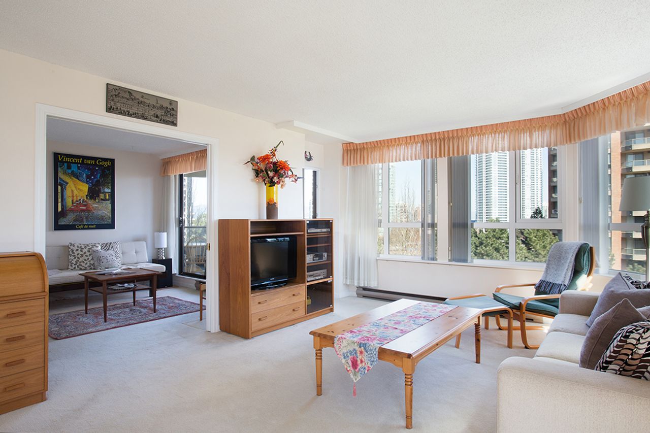 Welcome to The Embassy – A quality residence in a sought-after central location. This 2 bdrm corner suite has been pristinely maintained. Features Bright and Spacious 1207 sqft, open-concept living|dining room, views of park and city. SE-facing balcony is sized for entertaining with access from living room and both bdrm, to enjoy your morning coffee and evening reading. Master bdrm has ensuite and walk-in closet. In-suite laundry, 1 secured parking and 1 storage locker. Age 16+ restriction, no rentals or pets allowed. Building offers on-site caretaker, indoor swimming pool, hot tub and sauna. A proactive strata mgmt has numerous updates throughout : repiped (2005), rainscreened with newer windows and doors (2010), roof (2010), boilers and controls (2014) and more. Central Park, library, schools, recreation, transit, skytrain, Metrotown entertainment and shopping nearby.