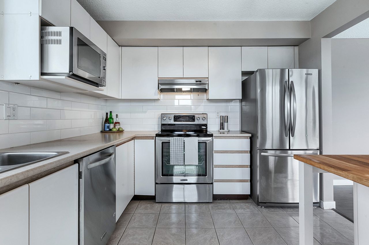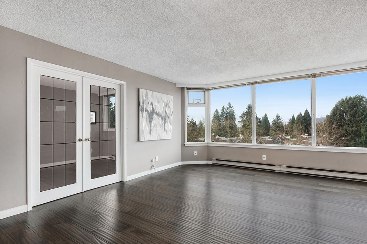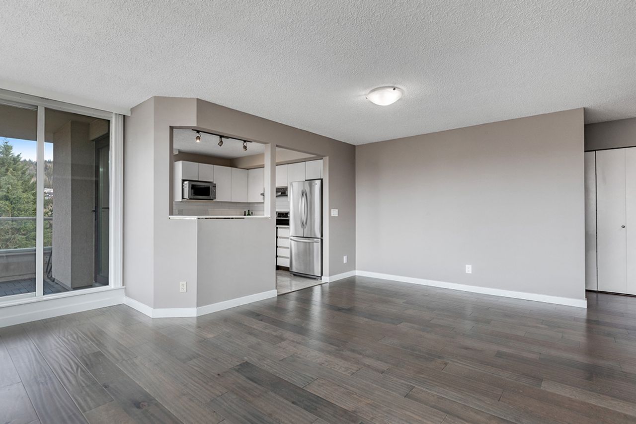 Welcome to The Ambassador – bright and spacious 1019 sqft, NW 2 bdrm corner suite, featuring open and airy layout, large windows welcoming in abundant natural light, views of lush treetops, city skyline, sunsets and North Shore mountains. Generous sized bdrms on opposite sides. Covered balcony is accessible via living space and kitchen, updated flooring and SS appliances, ample storage, in-suite laundry (with newer washer and dryer), parking + locker. Proactive strata mgmt. has numerous interior/exterior/mechanical updates : re-pipe (2005), exterior painting (2005), elevator (2010), state-of-art fire panel (2017), boilers (2017), exterior and underground parking lighting (2017), new carpet and painting in hallways (2018), intercom system upgrade (2018), underground parking painting (2019), fitness equipment upgrade (2019), car wash bay re-surfaced (2020), parking garage gate (2020), storage locker lightings (2021), access card readers and fobs (2022), backup generator (2022), boiler (2023), roof drains (2023), front garden (2023) and elevator upgrade (2025). On-side caretaker, well-equipped gym, rec room and outdoor pool. Mins to schools, SFU, transit, shopping, trails and golf course. Grab your racquet or paddle for a round of tennis or pickleball. A very desirable neighbourhood and unit, offering first-home, remodeling project and investment potential.